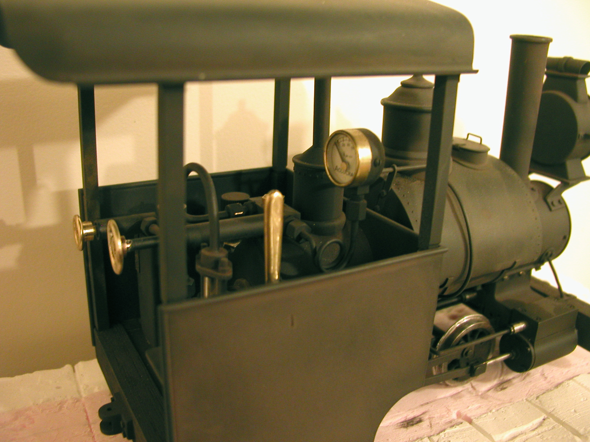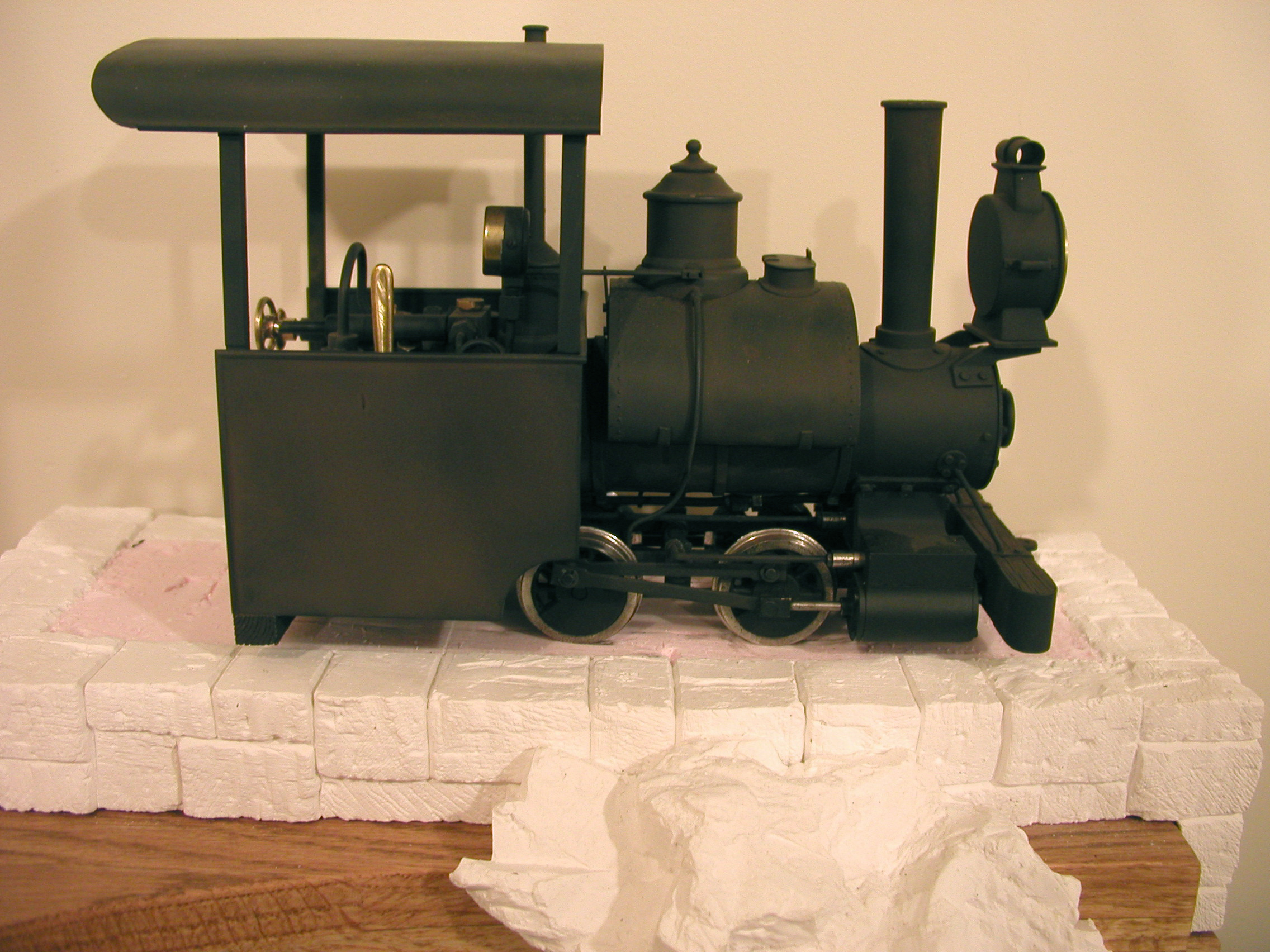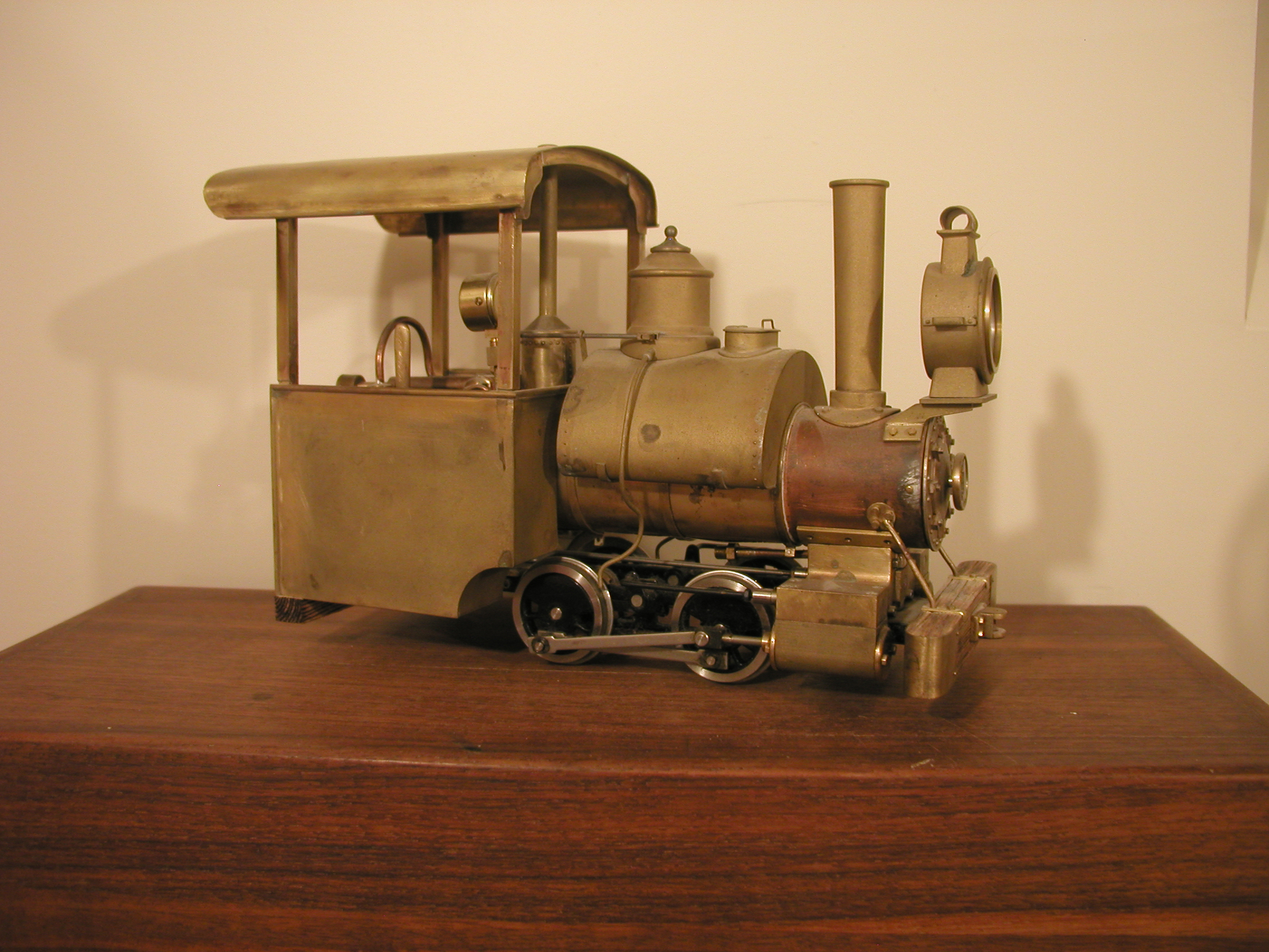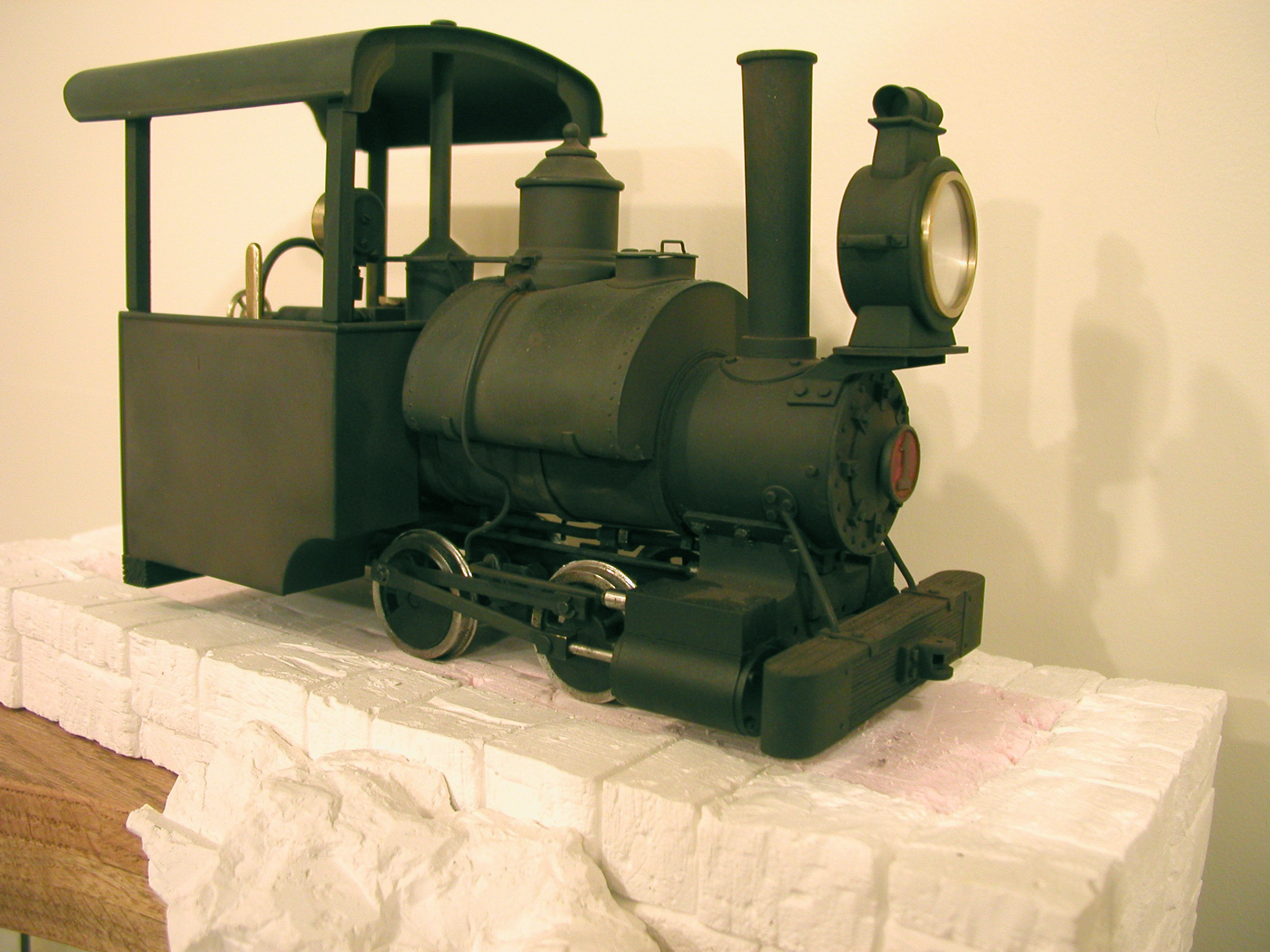 No. 1 - Number one is a reworked Ruby based on a locomotive made by the NKP Locomotive Works around 1904 (NKP - as in No Known Prototype). I took on this project to learn a bit about live steamers before I build one completely from scratch. I have redone the boiler, added a water glass, rebuilt the cylinder block, dome, stack etc. New cylinders from Milton Locomotive Works and changing to inside admission greatly improved the running characteristics of the engine.