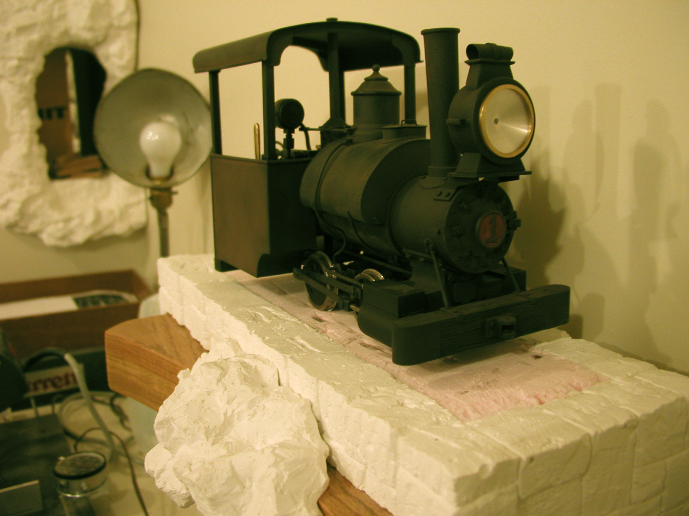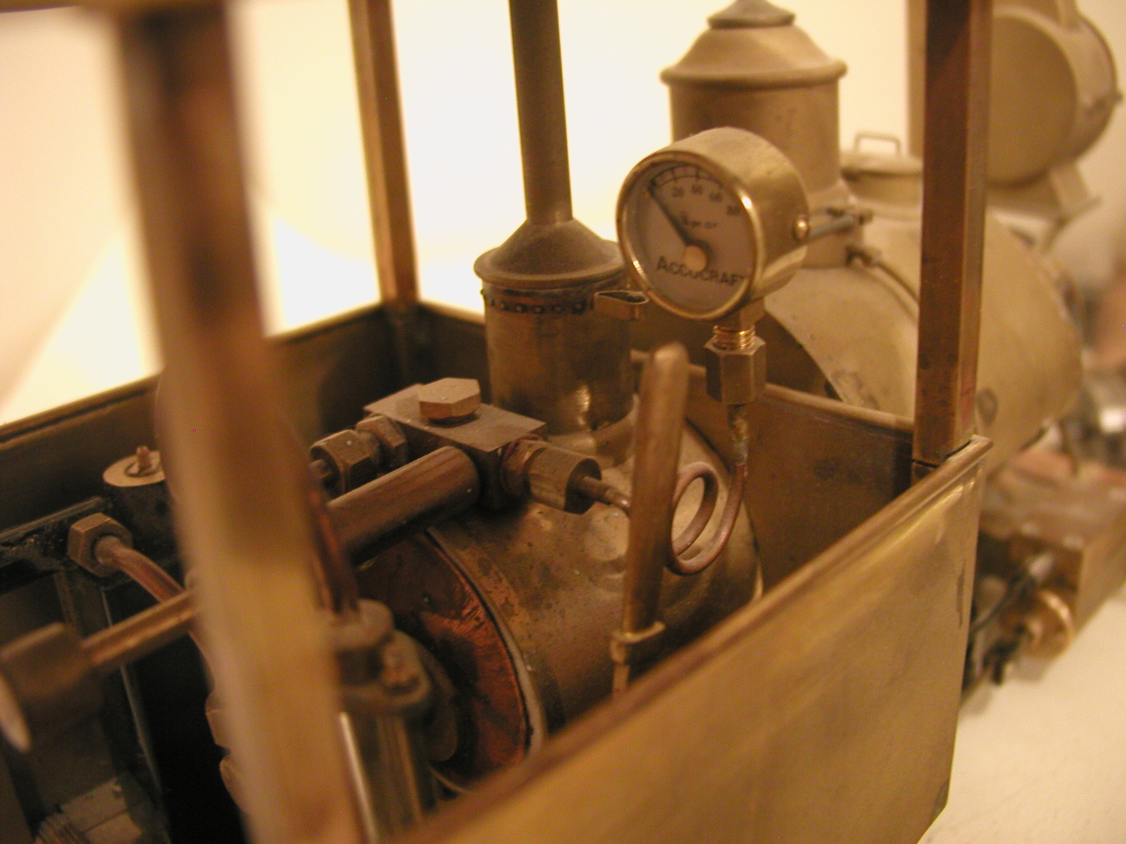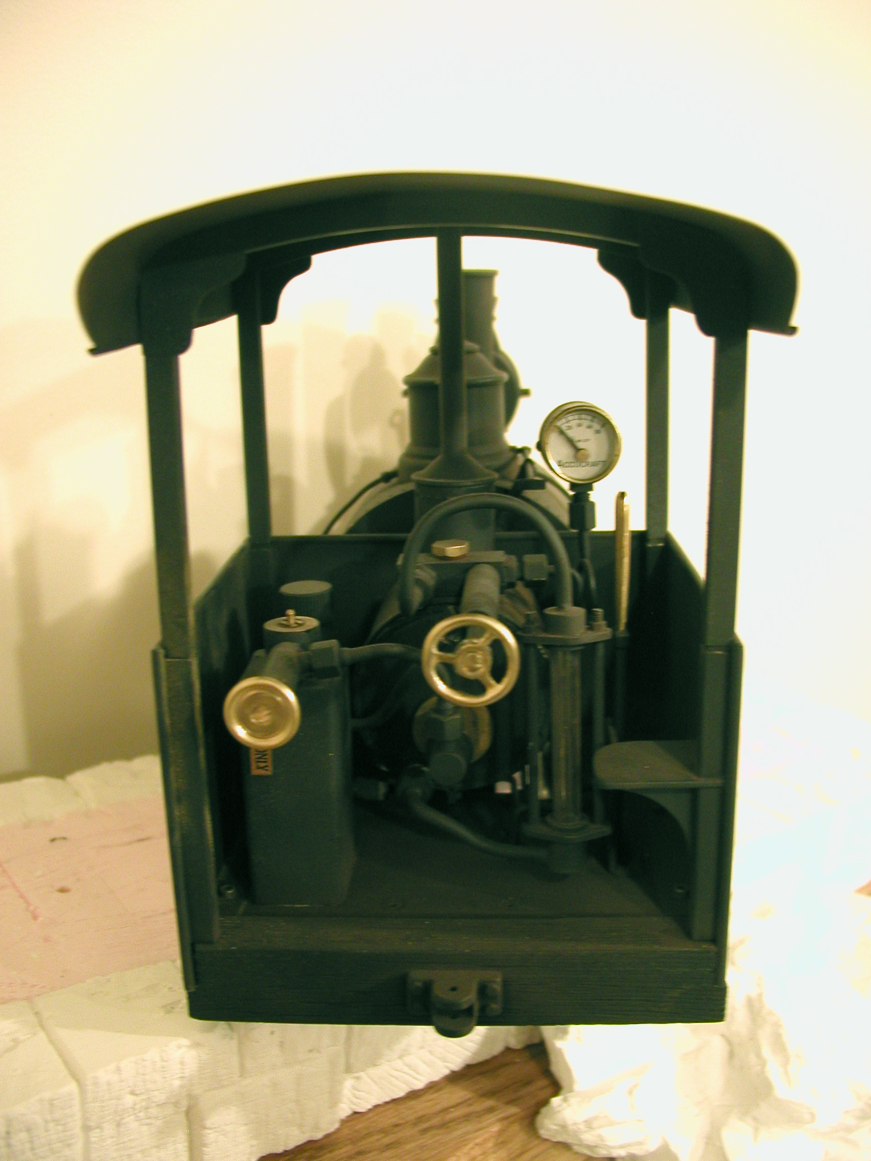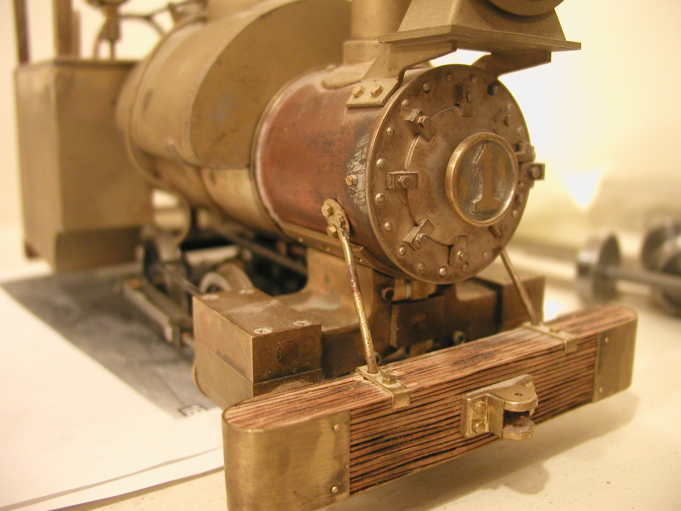 No. 1 - Number one is a reworked Ruby based on a locomotive made by the NKP Locomotive Works around 1904 (NKP - as in No Known Prototype). I took on this project to learn a bit about live steamers before I build one completely from scratch. I have redone the boiler, added a water glass, rebuilt the cylinder block, dome, stack etc. New cylinders from Milton Locomotive Works and changing to inside admission greatly improved the running characteristics of the engine.