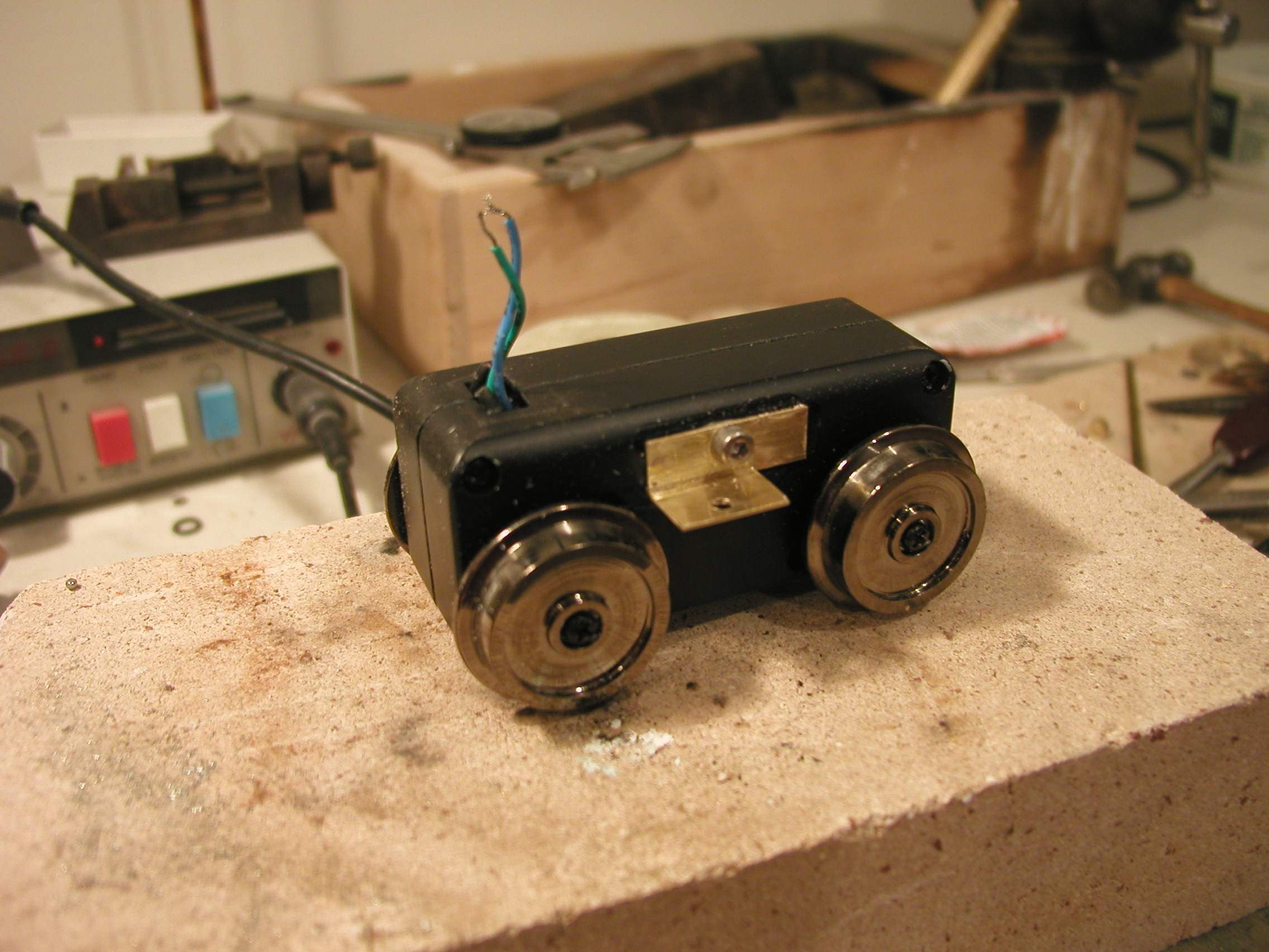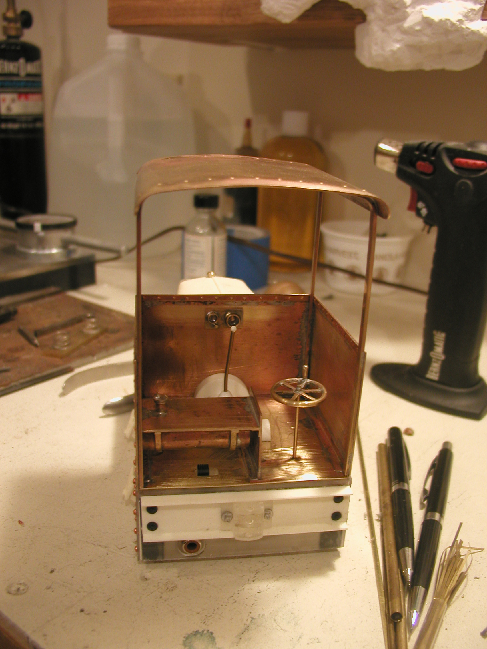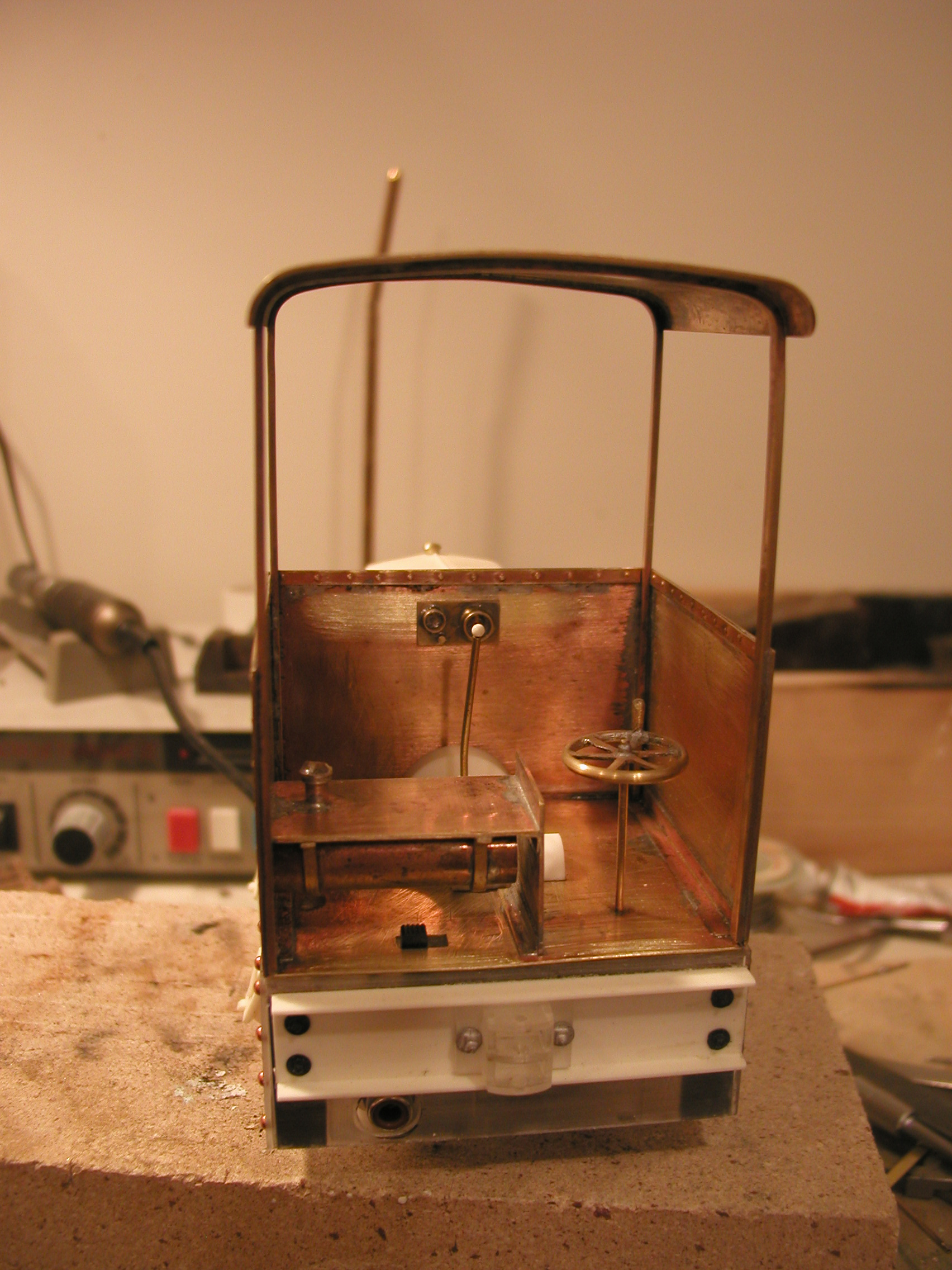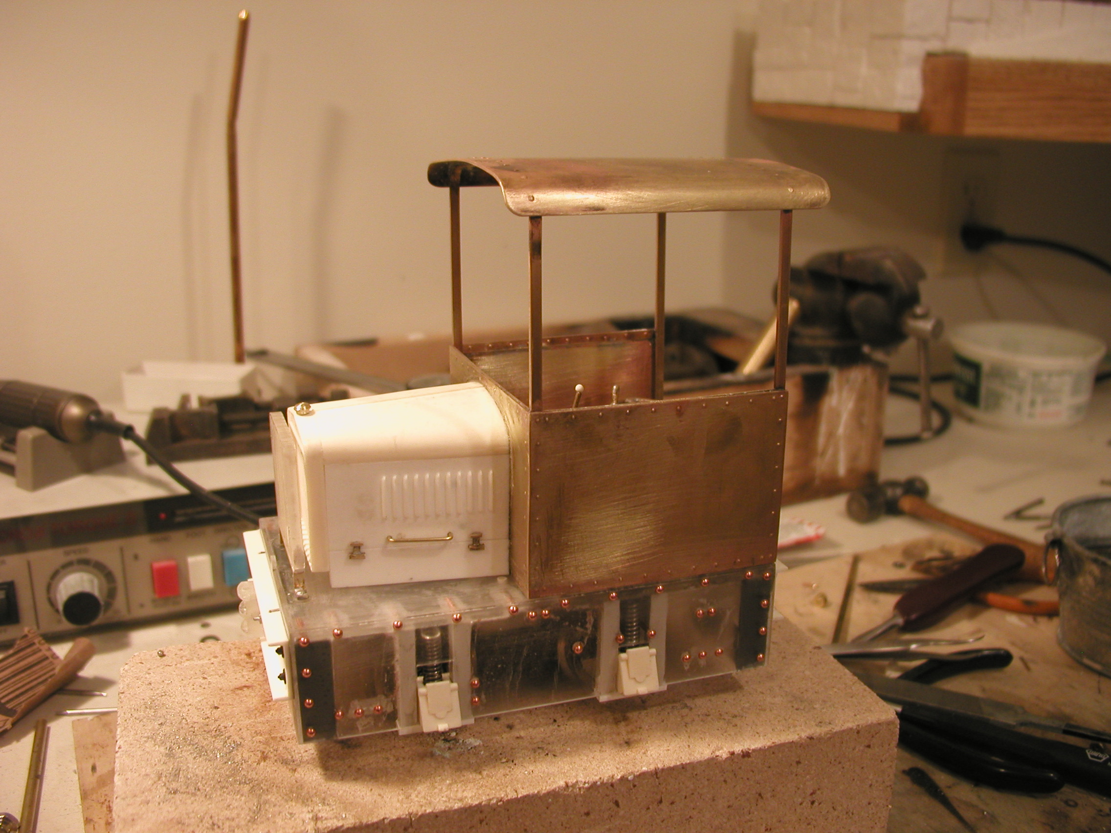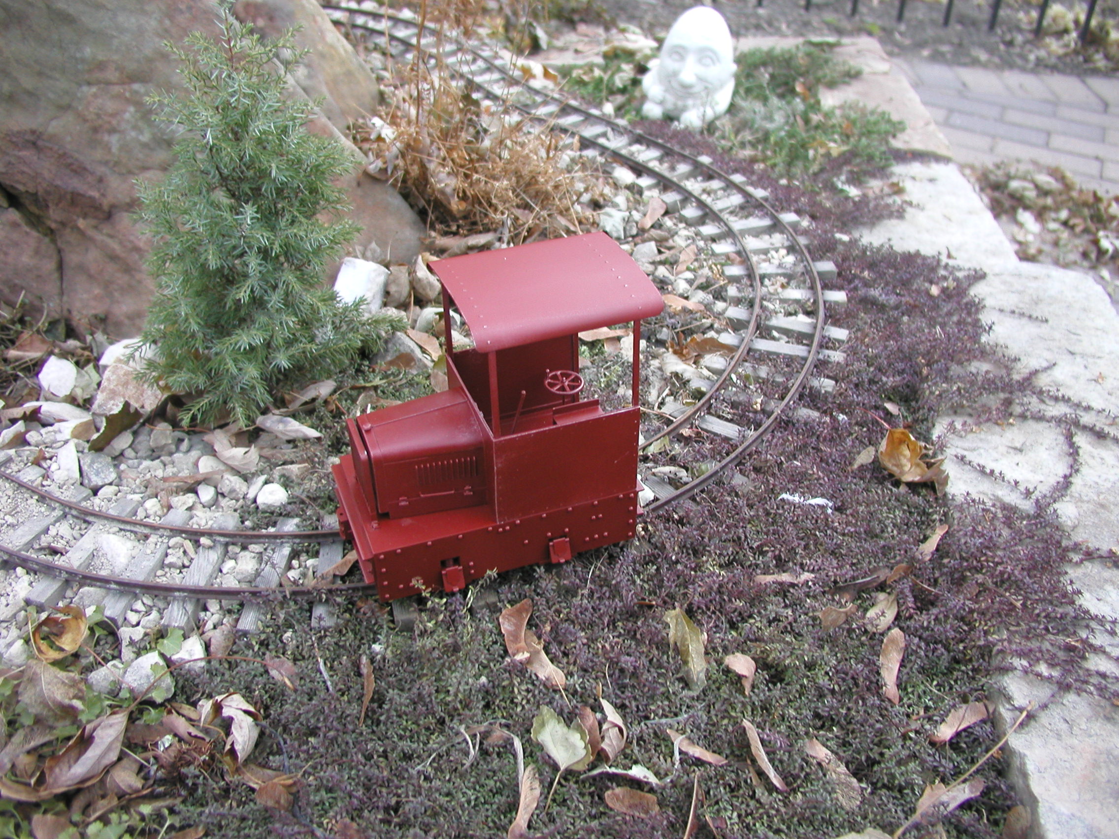No. 4 - This is model of a 2-ton locomotive produced by Vulcan Iron Works. I first learned of the prototype from Jeff Saxton's website and have wanted to make a model ever since. Jeff's website mentioned a limited production kit made by Bill Martinsen, but by the time I found out about it the kits were long gone. Unfortunately Jeff's website is gone but some of the prototype photos are posted below. In the fall of 2006 a second hand kit showed up for sale and I jumped at the chance to buy it. I combined Bill's excellent resin parts for the motor housing and frame and built the cab from brass sheet. The model is powered by an Aristocraft motor block and radio controlled using a Locolinc controller.
