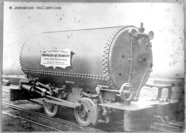 Patent Locomotive of New York. James Lancaster apparently moved to England in the mid- 1890's, and with a local associate named John Hughes of Ruabon, Wales, he founded the British Compressed Air Tramways Company. This company was involved in compressed air car trials in Chester, England. They built the Hughes- Lancaster low pressure system (200 psi) where the cars were recharged at every stop by an automatic filling device from an air pipeline that ran along the tracks. This mechanical device seems to have worked not so well, and the low- pressure cars had a tendency to go out of power between the stops My source "Die verschiedenen Methoden der mechanischen Strreckenförderung im Bergbau" by Aloysius Stein (Gelsenkirchen 1898) states that the tests were to be terminated and the Chester tramway was to be electrified. And that it indeed was in 1898/99. That was obviously the end for the Hughes- Lancaster system- the company just disappeared and with it Jim Lancaster. |